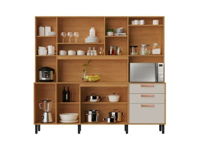 Desenvolvido para maximizar o espaço em sua cozinha, o Armário Kit de Cozinha Nápoles, com 8 portas e 3 gavetas, oferece compartimentos ideais para a organização de seus utensílios culinários. Este móvel combina estilo e praticidade, além de apresentar excelente qualidade de material, proporcionando funcionalidade e elegância ao ambiente da sua cozinha.