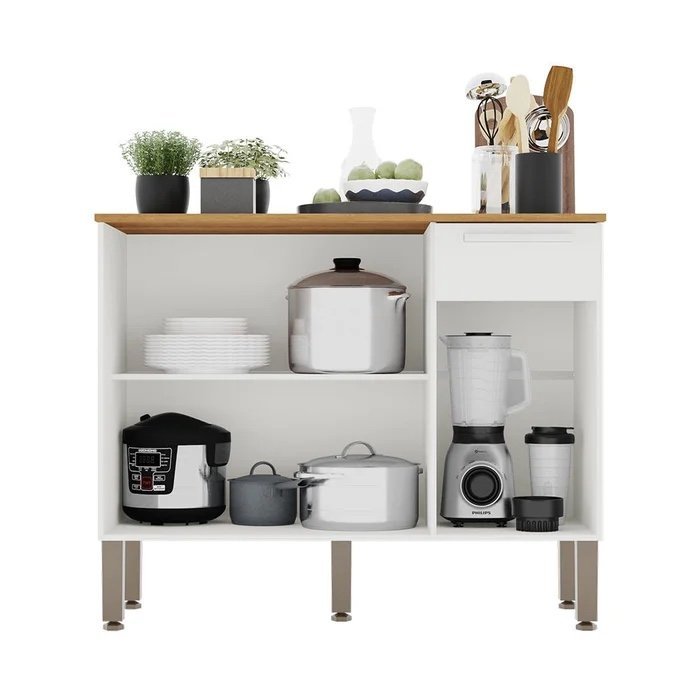 Harmonia e organização estarão garantidas no lugar mais requisitado de sua casa com o Balcão de Cozinha Madri, facilidade para armazenar seus utensílios domésticos. Ele trará para sua cozinha muita elegância e qualidade, afinal as peças são confeccionadas em MDP de alto padrão de qualidade tornando muito mais resistentes e duráveis, garantindo uma longa vida útil. Aproveite!