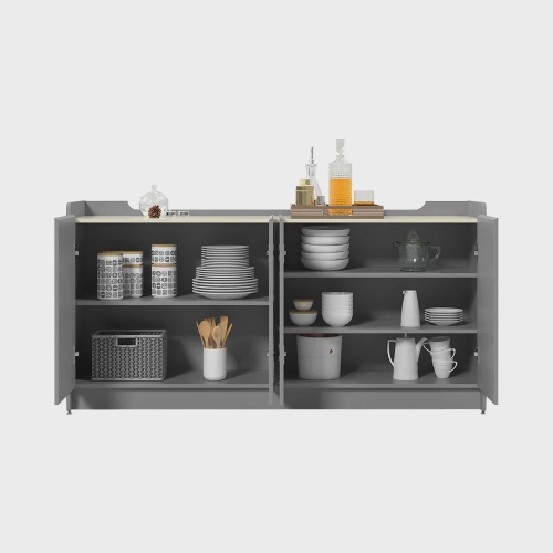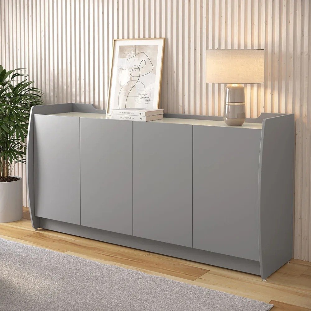 Buffet Sublime 160 4 Portas, Côr Cinza.Off White, da Gelius Moóveis, Medidas: Alt 0,805m Larg 1,606m Prof 0,448m, Estrutura 100% MDP, 4 Portas com Dobradiças Metálicas Tipo Slow Motion, 1 Divisão e 3 Prateleiras Internas, Tampo Superior e Laterais Curvas com Bordas Laqueadas, Pés com Regulagem. *Sugestão: Para Fazer o Combo, Compre o Buffet Sublime 160 4P Off White/Naturale Gelius Móveis*