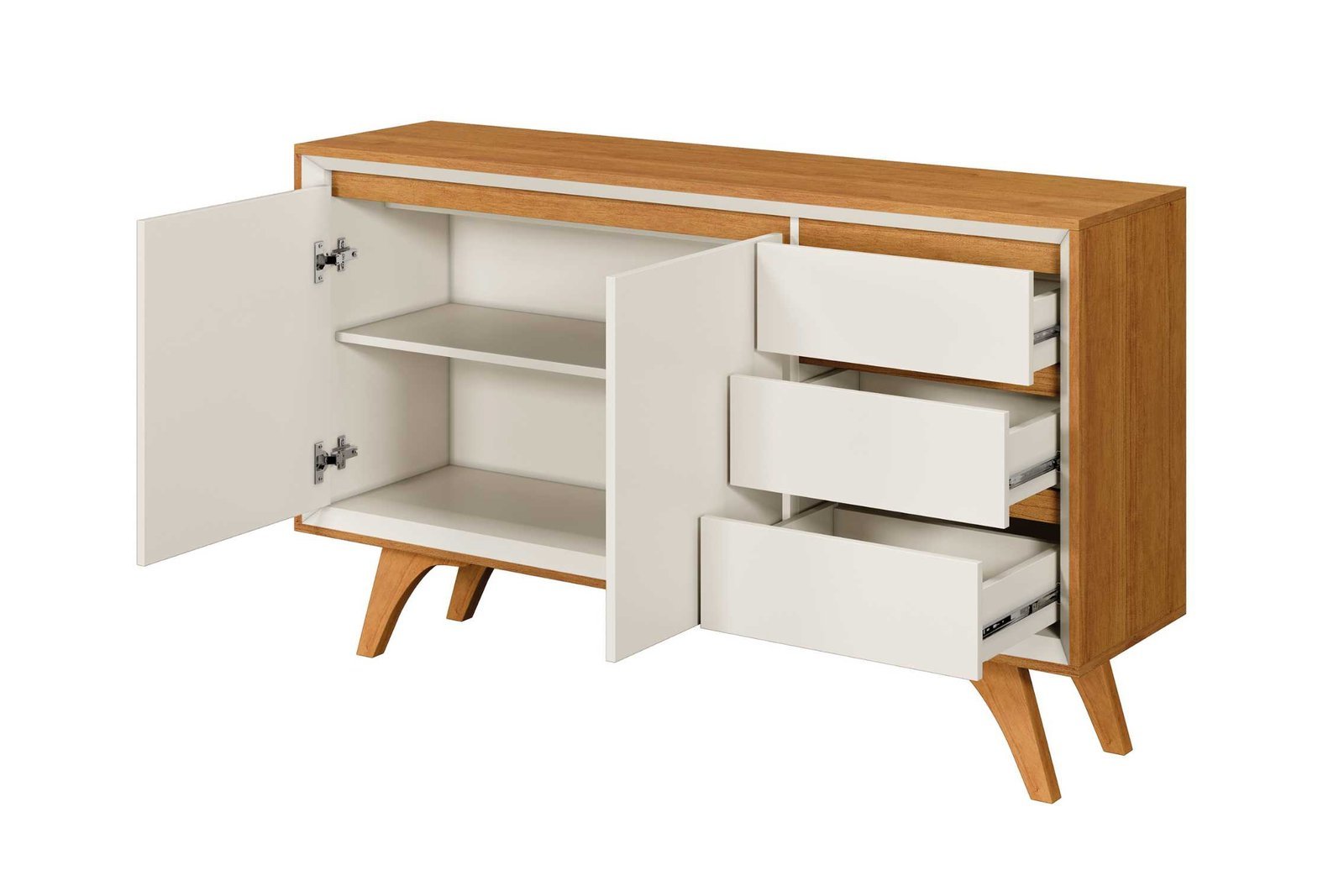 Transforme sua casa em um ambiente ainda mais aconchegante com o Buffet com 2 portas e 3 gavetas. Com dobradiça Slow Motion, pés em madeira maciça com regulagem de altura e puxadores cava, este móvel é a escolha perfeita para quem busca funcionalidade, praticidade e estilo na decoração.