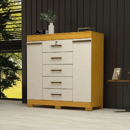 Cômoda ACP Diana 5 Gavetas e 2 Portas com Sapateira e Corrediças Metálicas – Nature/Off White