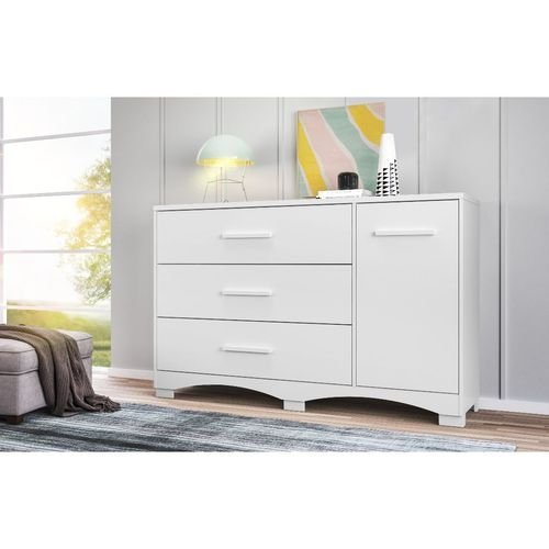 Medidas: Alt 0,98m Larg 1,50m Prof 0,41m, em MDP, 3 Gavetas com corrediças telescópicas e com reforço na estrutura do fundo, 1 portar de bater com dobradiças metálicas, puxadores em MDF revestidos, rodapé fresado e tampo em MDP de 25mm.