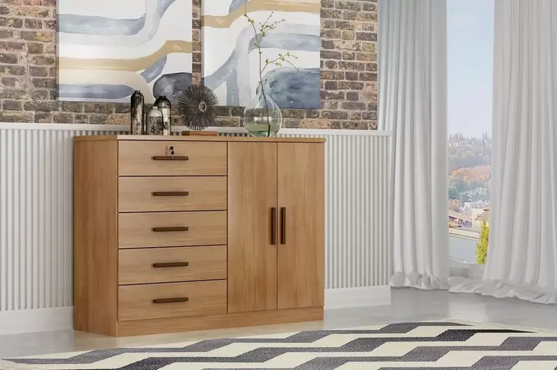 Cômoda Space 5 Gavetas 2 Portas Moveis Novo Horizonte Cumaru