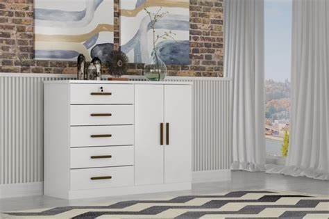 Com a Cômoda Space seu quarto estará completo e seus pertences bem organizados, uma aliada na organização de seu quarto. Fabricada em MDF e MDP, possui 5 gavetas com corrediças telescópicas e sapateira ampla. As corrediças telescópicas são feitas de aço e por isso são mais resistentes e duráveis, permitindo um deslize suave e uma abertura total da gaveta.