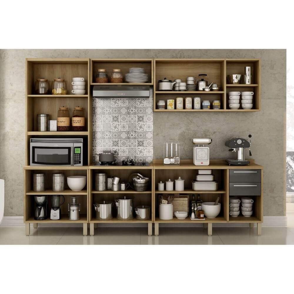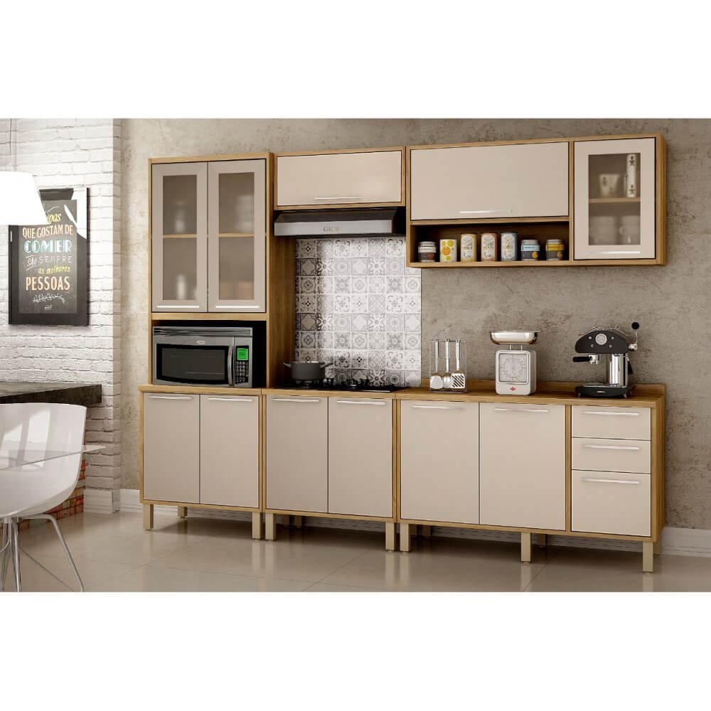 A Cozinha Paris Completa 12 Portas 2 Gavetas 5 Peças Salleto se destaca por ser super prática para o dia a dia. Seu espaço interno é muito bem distribuído e as cores combinam com ambientes modernos ou clássicos.
