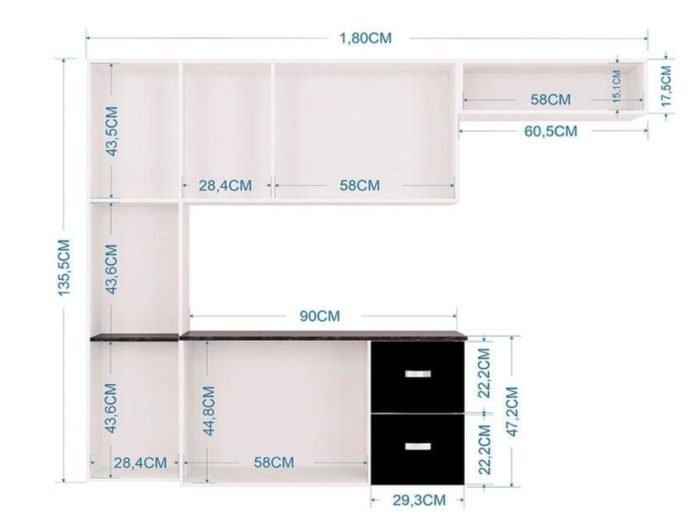 A Cozinha Júlia é a escolha perfeita para a sua casa, pois ela é compacta e repleta de compartimentos, com cinco portas e uma gavetas, ela irá fornecer muito espaço para armazenar seus utensílios com praticidade e organização.