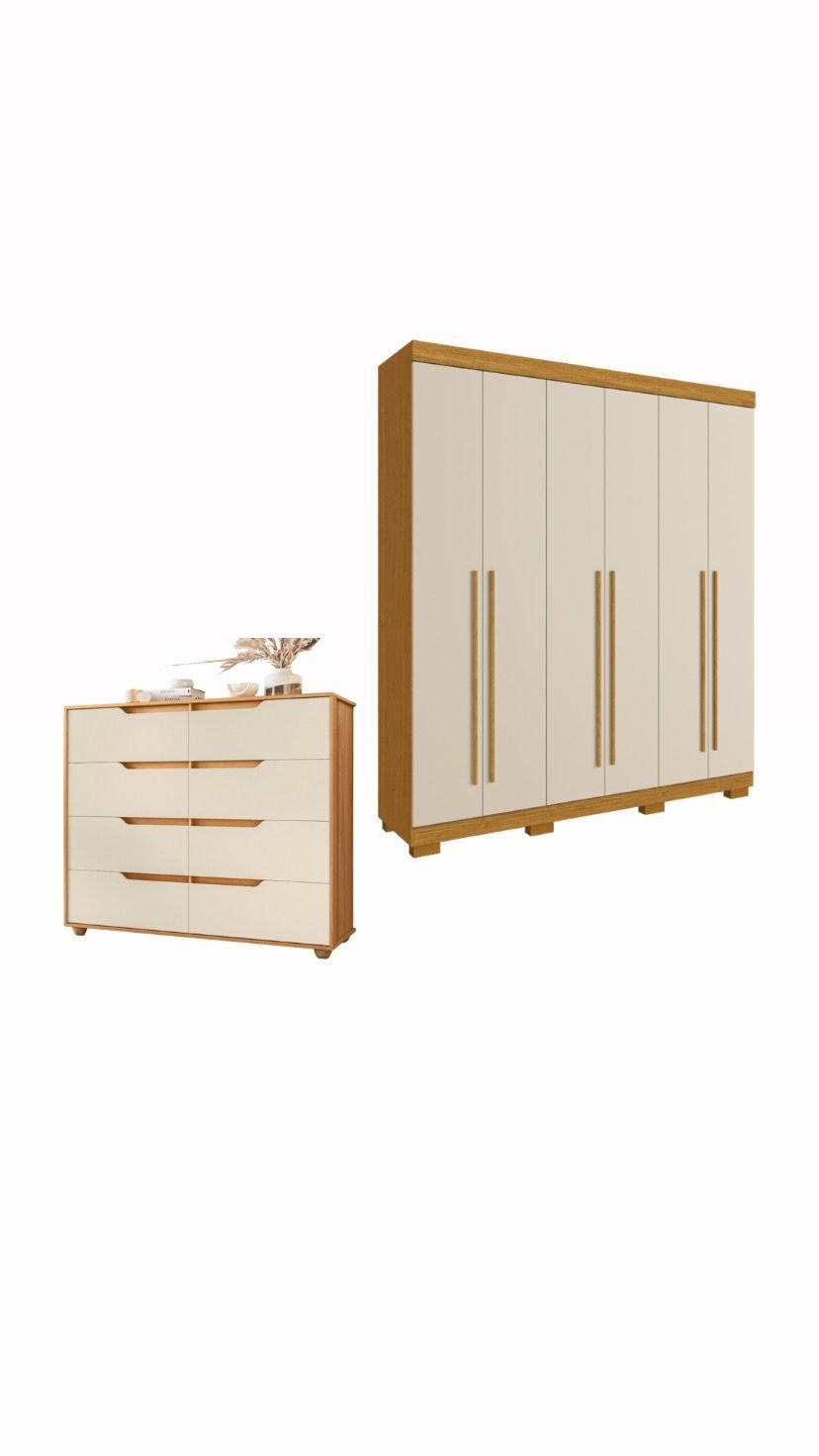 Guarda-Roupa 6 Portas Paolla 1,80 m Cinamono/Off White Cômoda Doble Carvalho