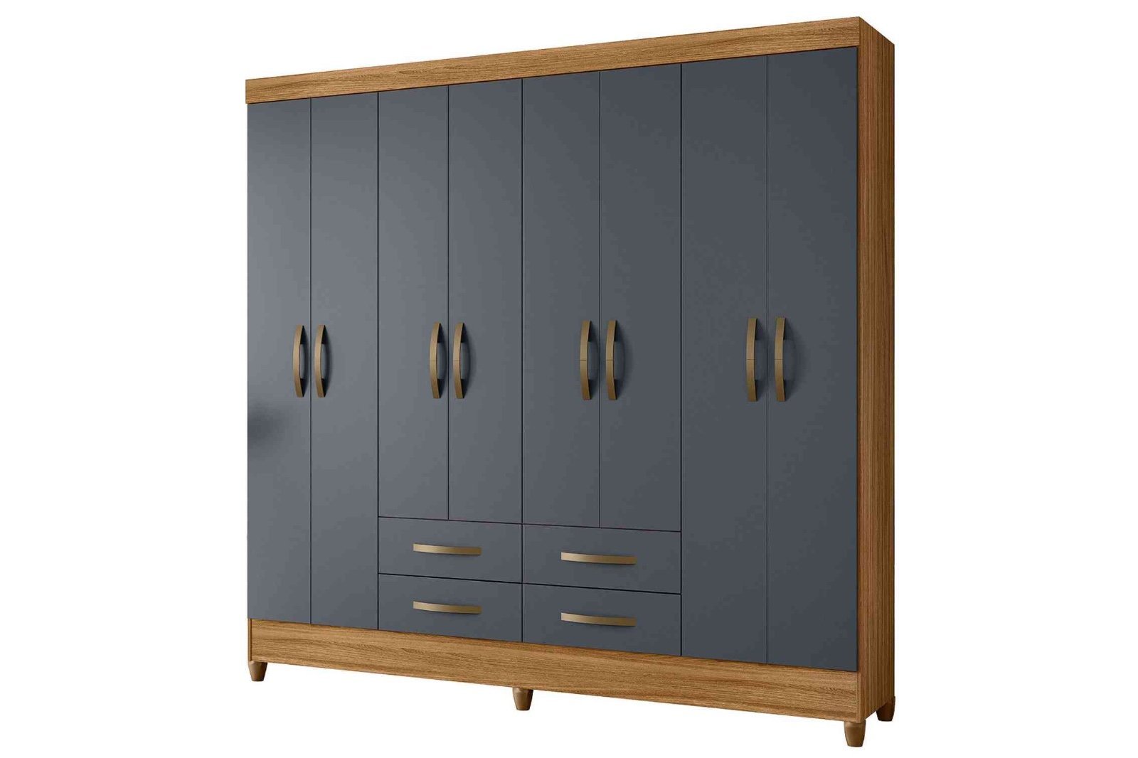 Transforme seu quarto em um espaço organizado e elegante com o nosso incrível guarda-roupa. Com 08 portas de giro e 04 gavetas externas com corrediças metálicas, este guarda-roupa é perfeito para armazenar todas as suas roupas e acessórios. Além disso, os puxadores na cor bronze adicionam um toque de sofisticação ao móvel.
