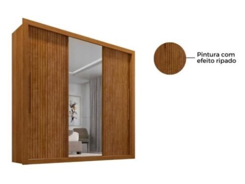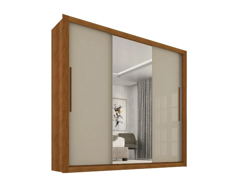 Guarda-Roupa Panamá 3 1 espelho – Cinamomo Ripado/Off White Flex