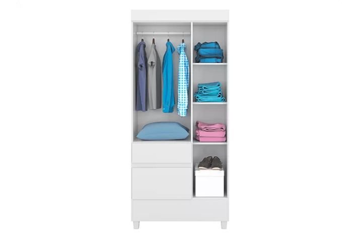 O guarda roupa Wind é compacto e agrega funcionalidade em seu interior. Amplos compartimentos, cabideiro e duas gavetas com corrediças metálicas, de maior profundidade e montagem flex na cor branco/rosa se destacam como os atrativos do móvel. Confeccionado em MDP de alto padrão, acabamento com pintura UV e pés de série, tudo para o melhor desempenho do produto