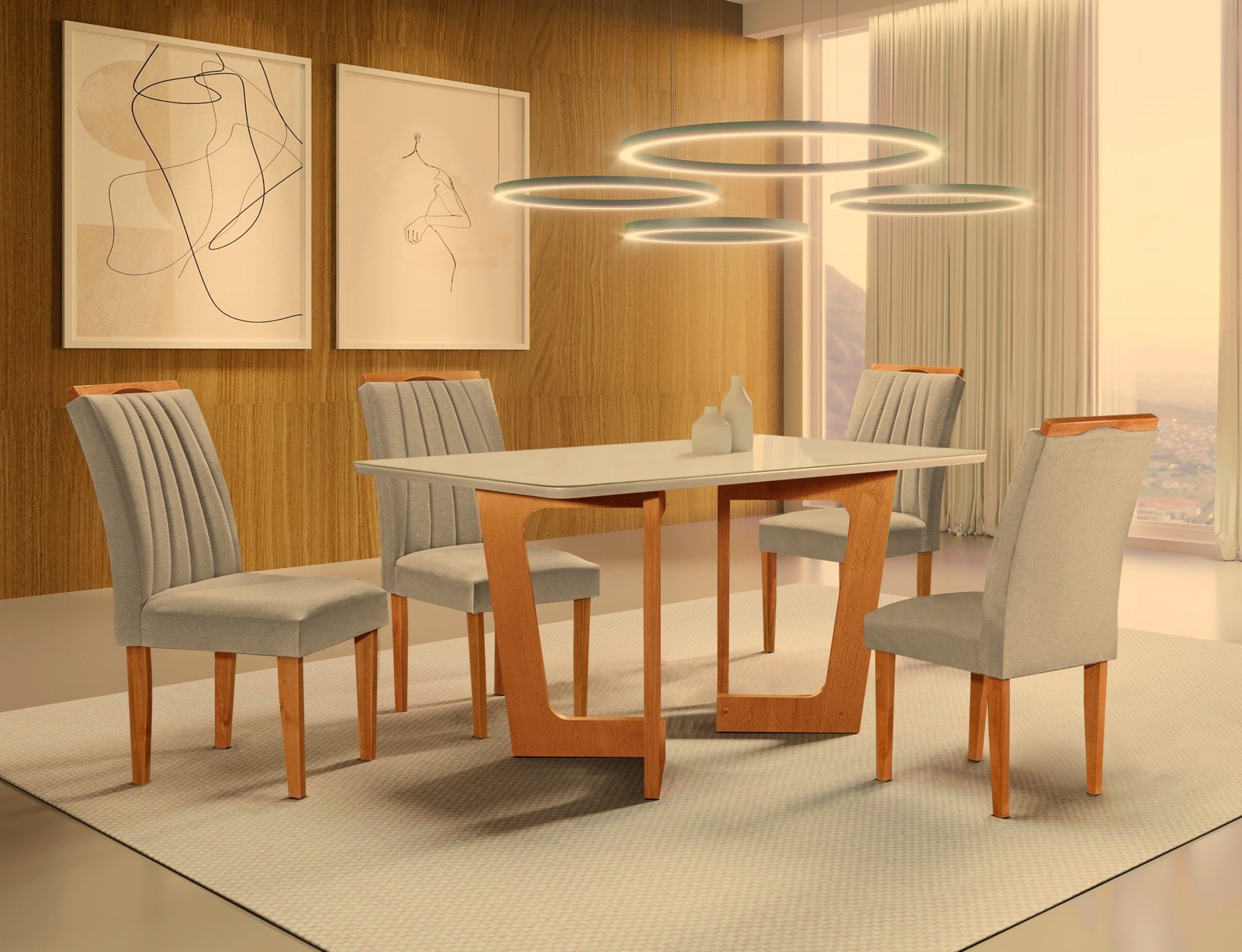 Mesa Dubai Cinamomo/Off White 120×90 com 4 Cadeiras Marselha