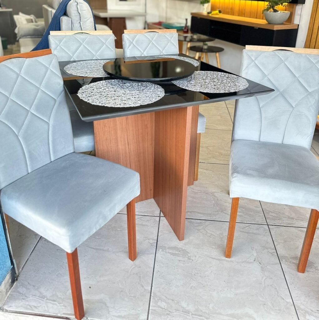 Seja o primeiro a avaliar “Mesa Helô 90 Mel/Grafite com 4 Cadeiras prata veludo” Cancelar resposta