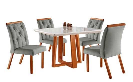 Mesa Jasmim Mel/Off White com 4 Cadeiras Jasmim Cinza 90×90