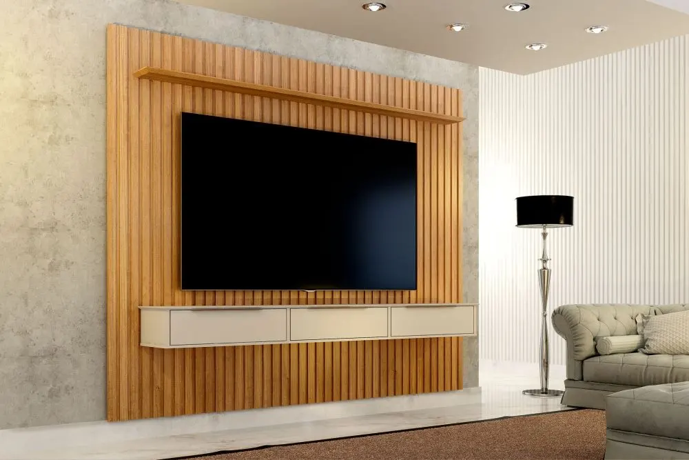 Dê um toque de elegância à sua sala com o Home Suspenso Vitória. Com 182,8 cm de largura, é perfeito para TV até 70″. Feito em MDF de alta qualidade, possui acabamento em pintura UV e um design ripado que confere sofisticação ao ambiente. Conta com uma prateleira robusta de 25mm, ideal para acomodar seus equipamentos e decorações. Transforme seu espaço com este painel moderno e funcional.