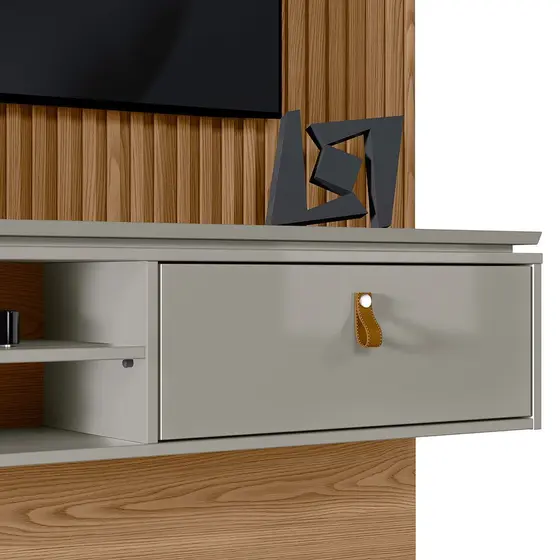O moderno Design do Painel Authentique utiliza elementos que enobrecem qualquer ambiente! Possui duas portas basculantes em MDP com pistão a gás, duas prateleiras e dois nichos para dispor objetos decorativos e aparelhos eletrônicos. E os atributos não param por aí, conta ainda com um painel todo com detalhes em ripado, tampo chanfrado de 18mm e dois puxadores de couro que fazem com que o Painel Authentique seja ainda mais sofisticado e moderno.