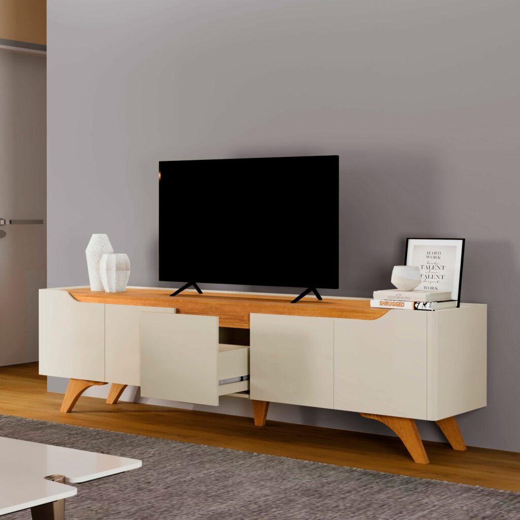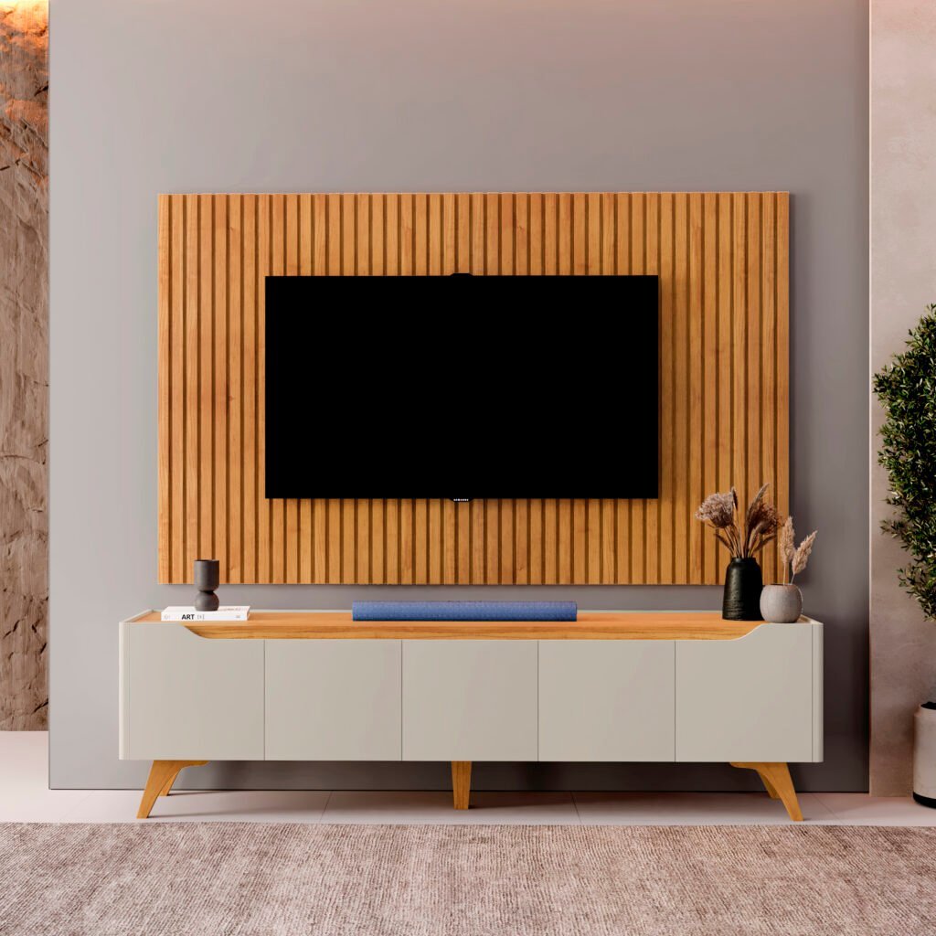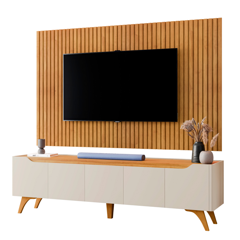 Painel Ripado até 75″ Versátilis 2,17 m Naturale + Rack Atenas Off White/Naturale – MAVAULAR