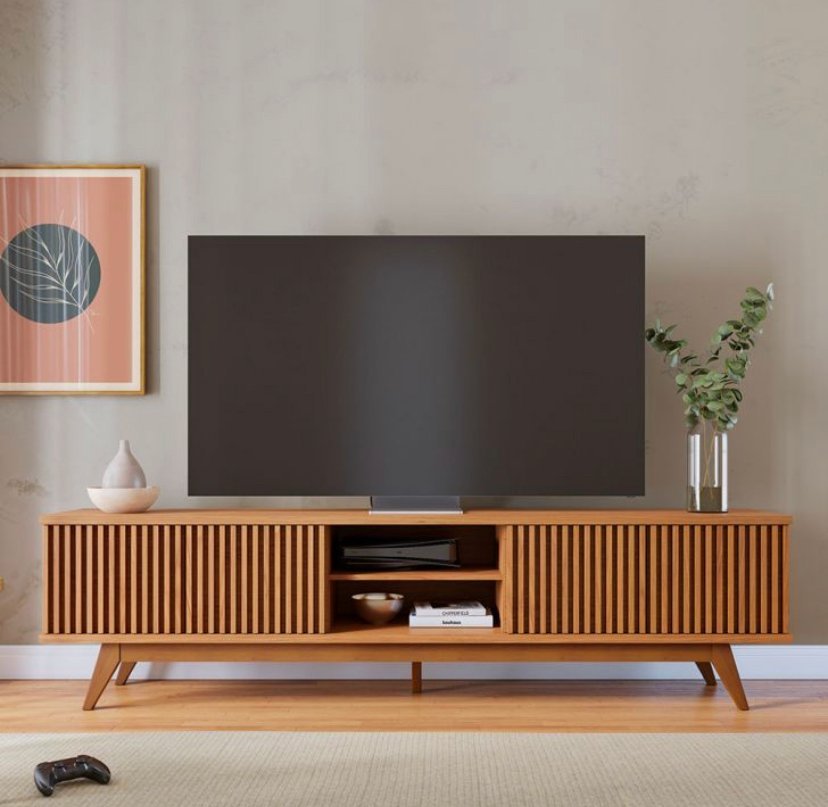 Apresentamos o Rack Bancada da linha Fortaleza, fabricado pela Colibri. Possui quatro portas de giro inspirado nas maiores tendências com o detalhe ripado nas portas trazendo delicadeza, sofisticação. Possui dois nichos para melhor acomodar seus aparelhos eletrônicos, e duas prateleiras para organizar seus objetos. Acomoda TVs de até 75 polegadas, fabricado em materiais de alta qualidade em MDP e com pés de madeira maciça será um móvel ideal para você que busca durabilidade. Com design contemporâneo e funcional é a combinação perfeita para qualquer ambiente dando aquele toque de requinte! Adquira já o seu!