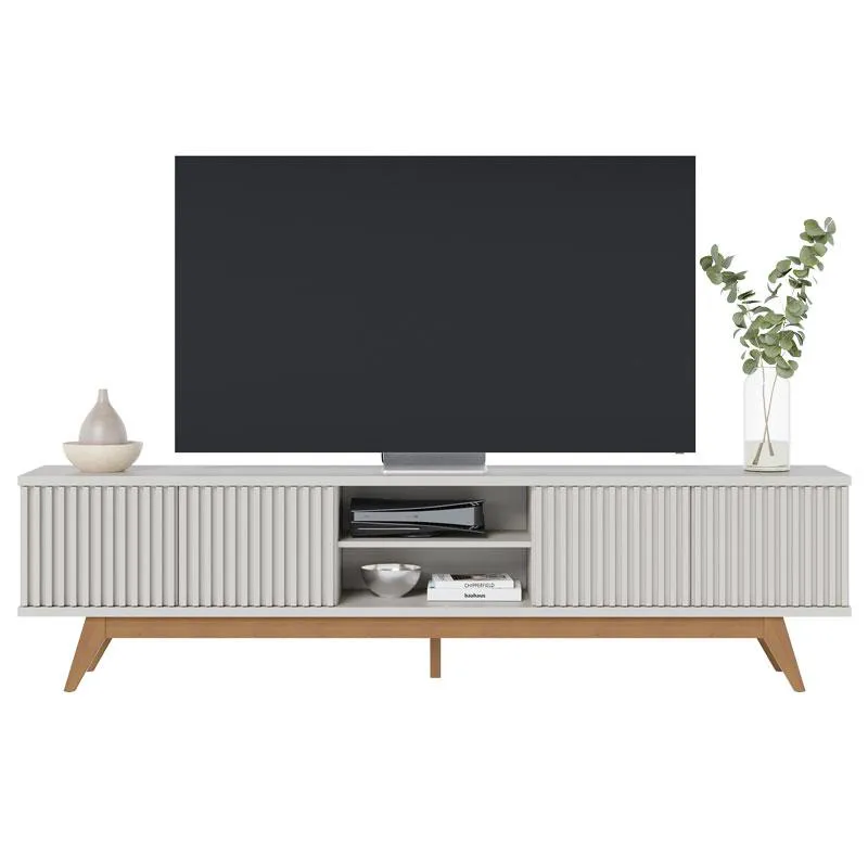 Apresentamos o Rack Bancada da linha Fortaleza, fabricado pela Colibri. Possui quatro portas de giro inspirado nas maiores tendências com o detalhe ripado nas portas trazendo delicadeza, sofisticação. Possui dois nichos para melhor acomodar seus aparelhos eletrônicos, e duas prateleiras para organizar seus objetos. Acomoda TVs de até 75 polegadas, fabricado em materiais de alta qualidade em MDP e com pés de madeira maciça será um móvel ideal para você que busca durabilidade. Com design contemporâneo e funcional é a combinação perfeita para qualquer ambiente dando aquele toque de requinte! Adquira já o seu!