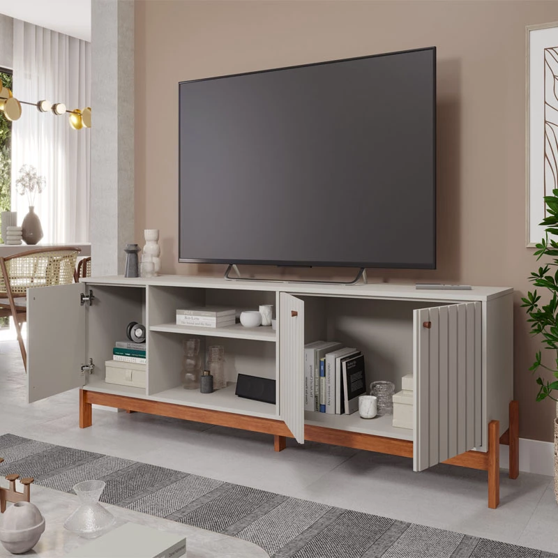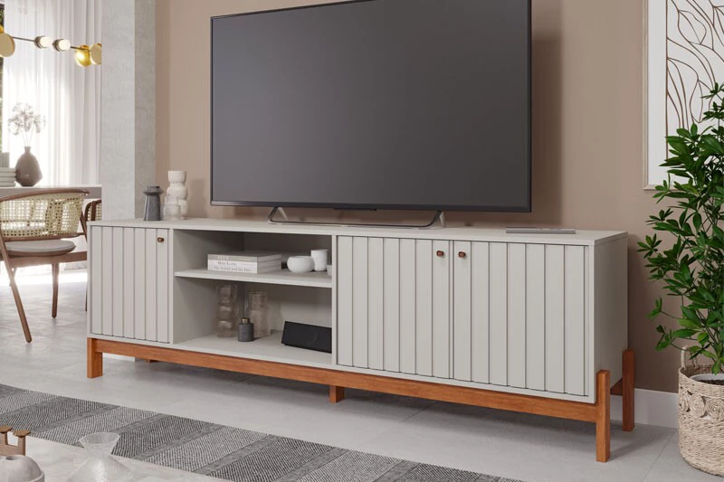 Rack Bancada Holanda Ripado 100% MDF larg. 2.05m Off White/Cinamomo Permobile