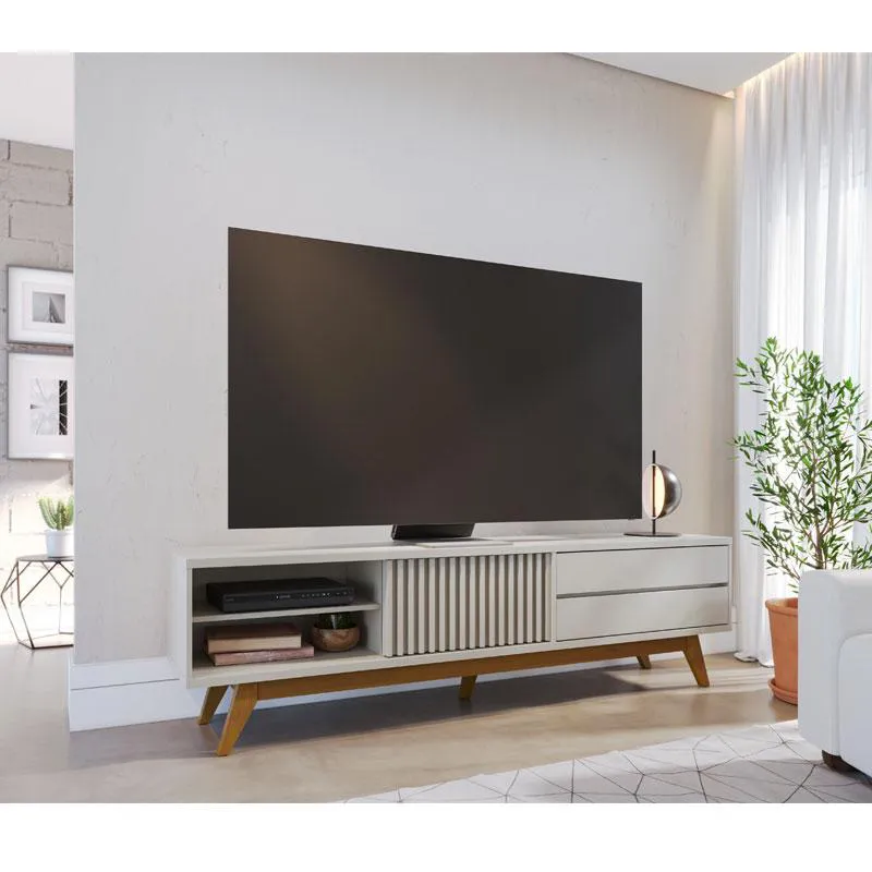 Apresentamos o Rack Bancada Veneza desenvolvido pela Colibri, construído com materiais de alta qualidade em MDP/MDF garantindo mais durabilidade e resistência. Com um lindo design contemporâneo e inteligente, possui dois nichos espaçosos ideal para organizar seus dispositivos eletrônicos, e objetos além disso uma porta de correr facilitando o acesso ao seu interior adicionando praticidade. Duas gavetas equipadas com corrediças telescópicas trazendo mais suavidade ao abri e fechar. Possui uma prateleira, cinco pés em madeira maciça dando um toque sofisticado e mais estabilidade ao móvel. Acomoda TVs de até 75 polegadas. Com suas linhas limpas e acabamento refinado será a escolha ideal para deixar seu ambiente ainda mais belo! Adquira já o seu!
