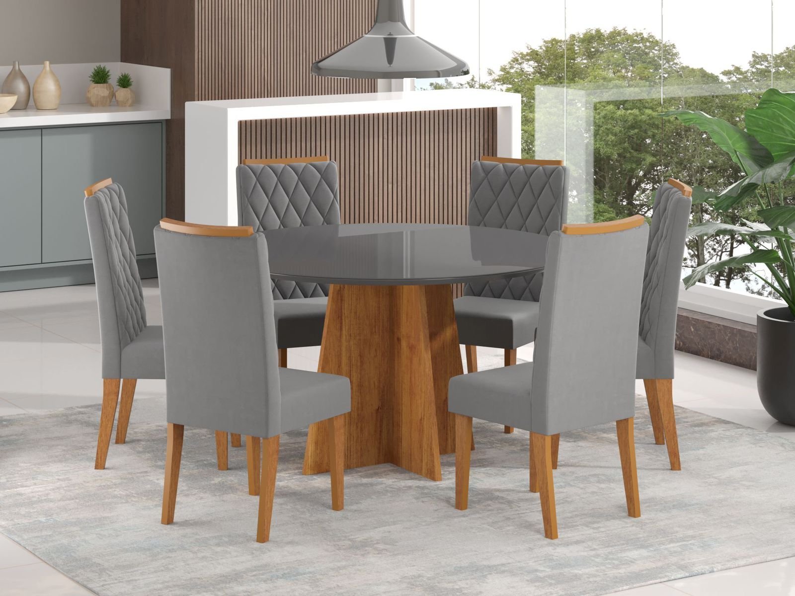 Mesa Daila 135 com 6 Cadeiras Iza, Cor Mel Blonde/Grafite Viero