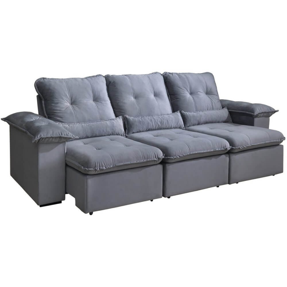 Sofá Arsenal 5 Lugares Retrátil e Reclinável 270cm 3 Módulos Tecido Veludo Aifos