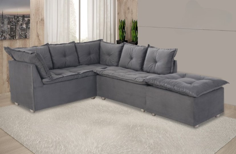 Sofá de canto Turim para decorar e trazer conforto! o sofá de canto Turim, decora sua sala de estar e traz conforto. Feito em madeira eucalipto 100% de reflorestamento. Encosto: fibra siliconada, Assento em espuma d26, pés de plástico cromado.