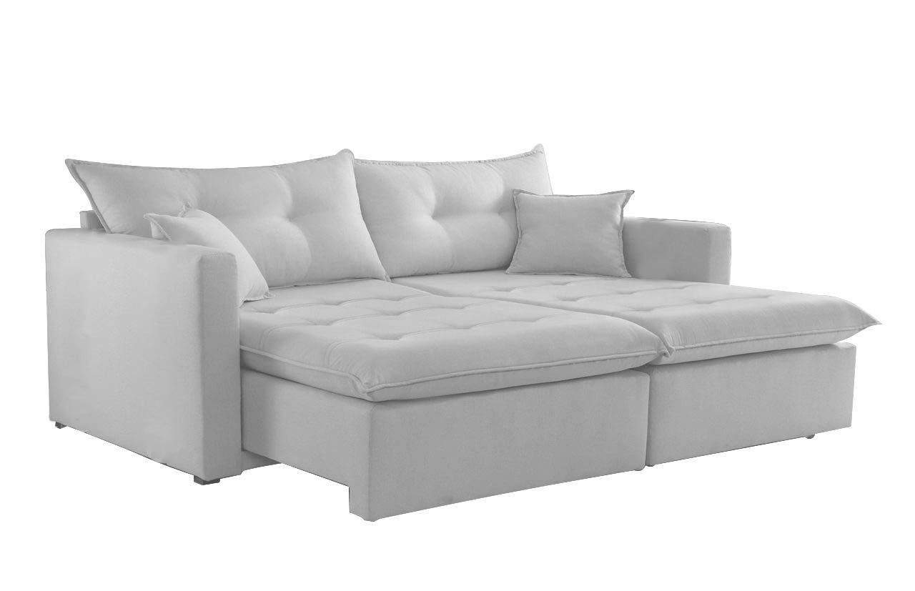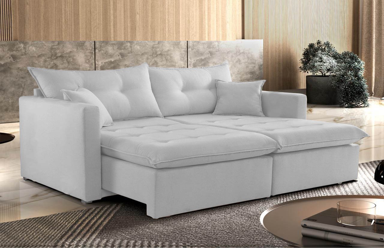 Transforme sua sala com o sofá retrátil de alta qualidade da nossa coleção de móveis para casa. Com molas ensacadas e espuma D28, você terá o conforto e o suporte que merece. O pilow de 15cm de espessura garante momentos relaxantes e agradáveis.
