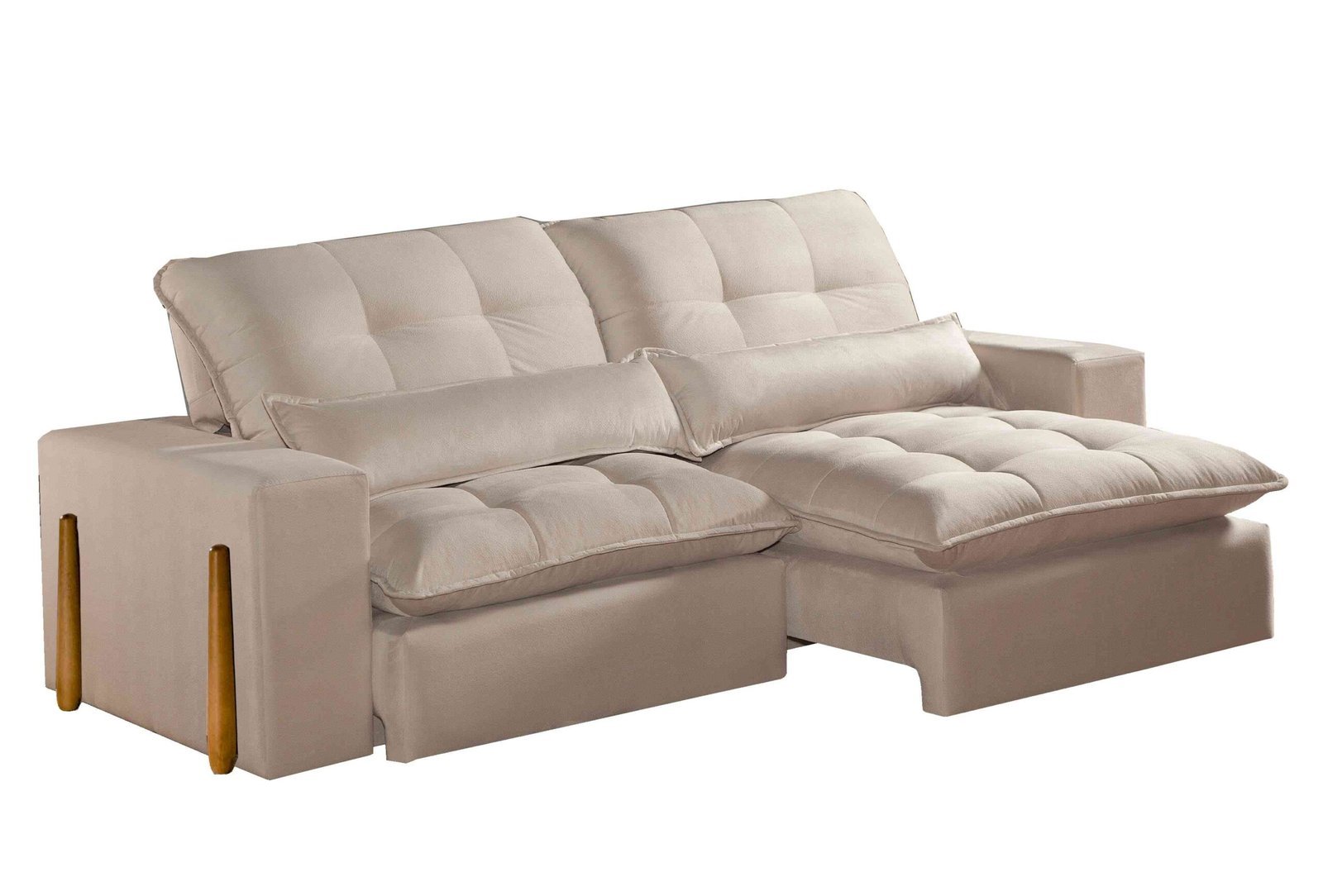 Estofado Retrátil Reclinável Itaoca Veludo, Côr Bege Claro