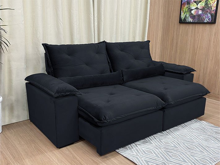 Sofá Retrátil Reclinável 1,80 m Preto 504 Zuqui Plus