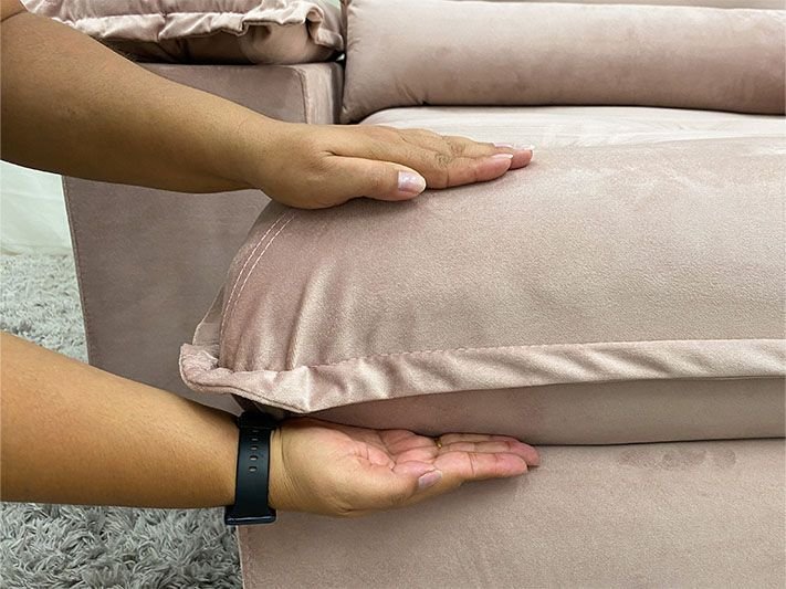 O revestimento é em tecido veludão Premium, deixando a superfície do sofá muito mais macia.